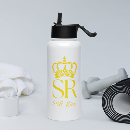 THSR 32 oz Stainless Steel Water Bottle – Gold KING Lion & “SR Still Rise” Motivational Bottle with Straw Lid