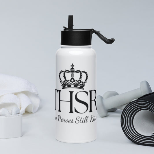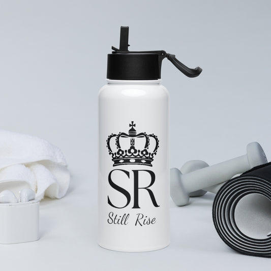THSR 32oz Stainless Steel Water Bottle – Black KING Lion & “SR Still Rise” Motivational Bottle with Straw Lid
