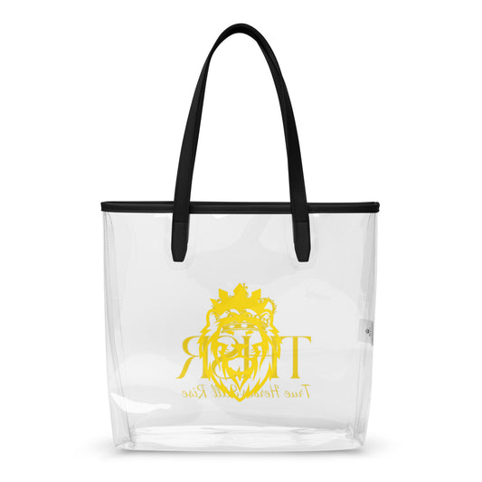 THSR Clear Tote Bag – Gold KING Lion & “True Heroes Still Rise” Motivational Transparent Stadium Bag