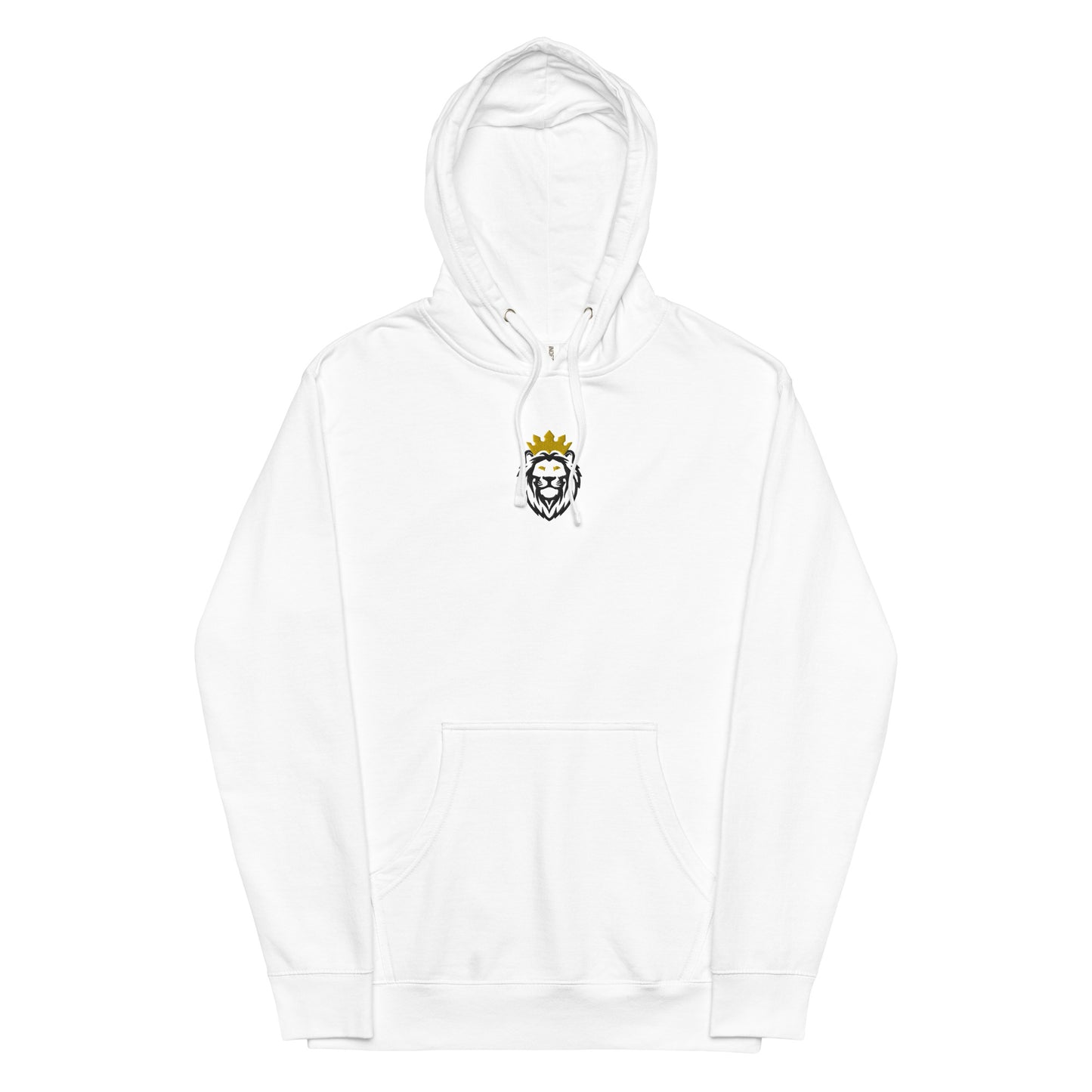 THSR Adult Pullover Hoodie with Center-Chest Logo – White Pullover Hoodies Featuring Black & Gold THSR KING Lion wearing a crown Design for Adults