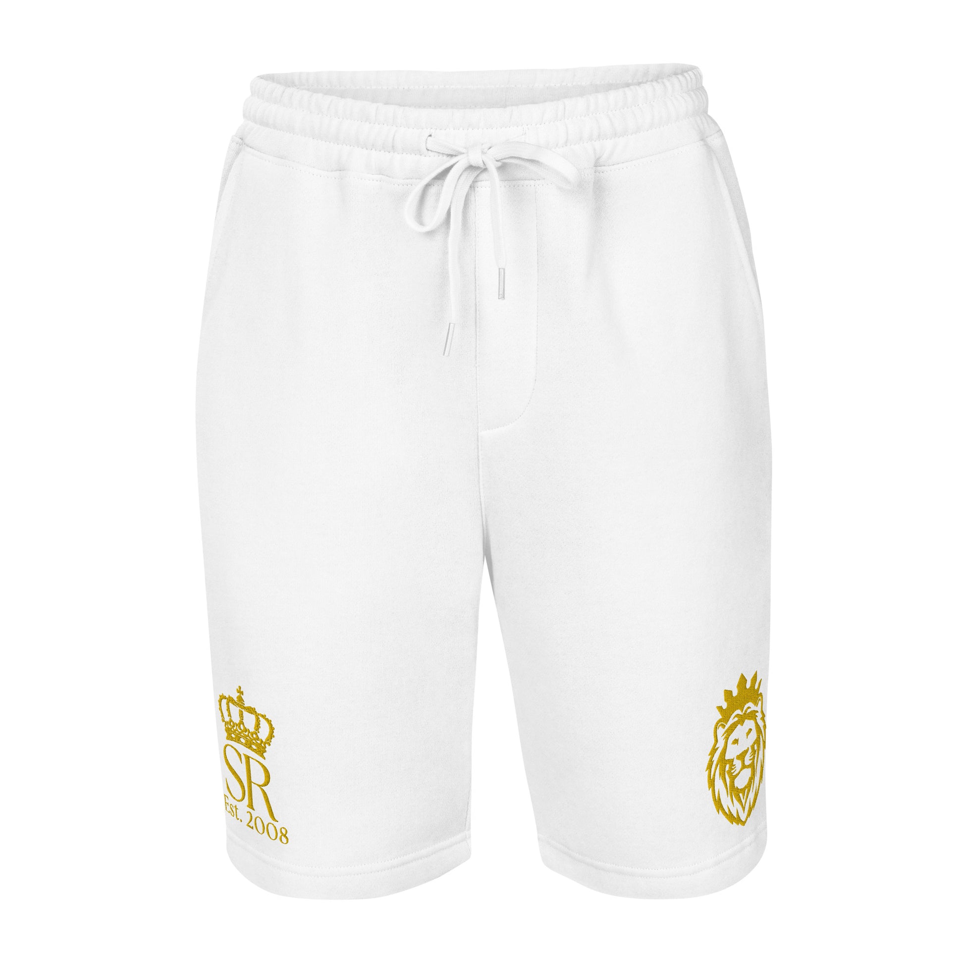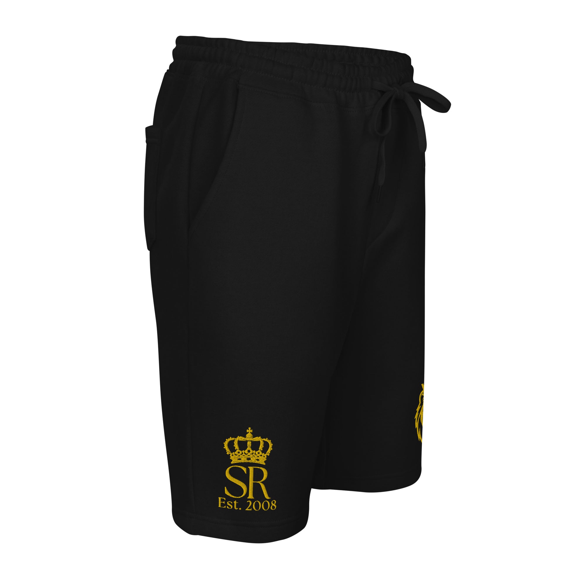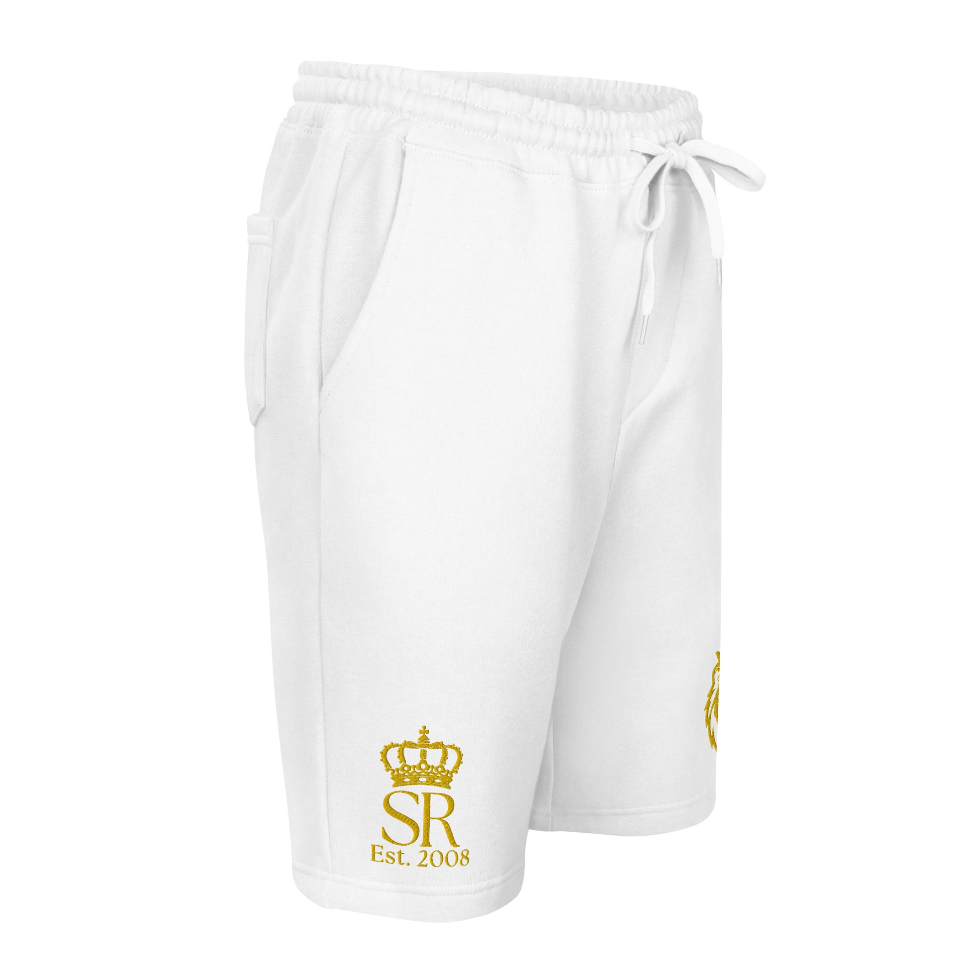 -White Fleece Shorts or Black Fleece Shorts featuring distinctive embroidered details: a Gold THSR KING Lion wearing a crown on the left leg, and a sleek Gold "SR Est. 2008" Design on the right leg